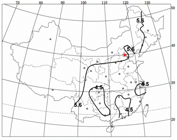 28.读“1992~1993年中国年平均降水PH值的分布”图,回答下列问题。(10分)