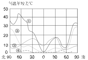(2)表示全球气温日较差随纬度变化曲线是___________,日较差最大的纬度是__________,请你分析原因_____________________________________________________