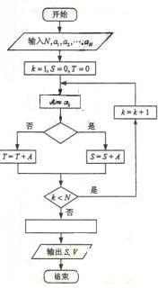 ,其中收入记为正数,支出记为负数。该店用下边的程序框图计算月总收入S和月净盈利V,那么在图中空白的判断框和处理框中,应分别填入下列四个选项中的