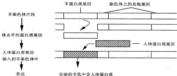 (1)从羊染色体中 “剪下”羊蛋白质基因的酶是 。人体蛋白质基因“插入”后连接在羊体细胞染色体中时需要的酶是 。