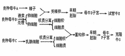 (2)培养出的克隆牛G几乎是 牛的复制品。这是因为 ,但又不完全相同,原因是 、 。
