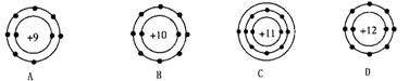 7.下列选项中代表离子的是(说明:数字代表质子数,“+”表示原子核所带的电荷,黑点代