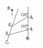 海里的速度向正北方航行,乙船按固定方向匀速直线航行,当甲船位于A1处时,乙船位于甲船的北偏西105°方向的B1处,此时两船相距
