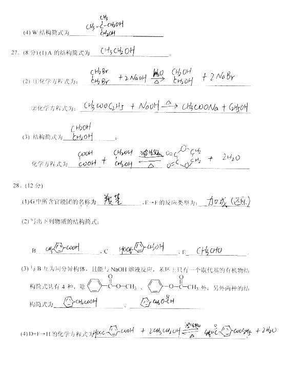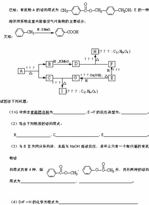 28.(12分) A~I 九种有机物的转化关系如图所示。