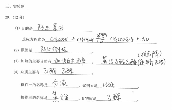 (4)锥形瓶内收集的乙酸乙酯粗产品中所含杂质主要有 。