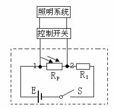 ②如图所示,当1、2两端所加电压上升至2V时,控制开关自动启动照明系统,请利用下列器材设计一个简单电路。给1、2两端提供电压,要求当天色渐暗照度降低至1.0(1x)时启动照明系统,在虚线框内完成电路原理图。