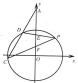 上的一点,点E,F为y轴上的两点,△PEF是以点P为顶点的等腰三角形,直线PE,PF交圆于D,C两点,直线CD交y轴于点A,则sin∠DAO的值为 ( ▲ )