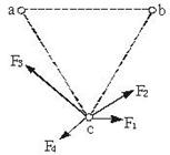 17.下图所示,三个完全相同的金属小球a、b、c位于等边三角形的三个顶点上。a和c带正电,b带负电,a所带电量的大小比b的小。已知c受到a和b的静电力的合力可用图中四条有向线段中的一条来表示,它应( )