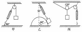 9.图中弹簧秤、绳和滑轮的重量均不计,绳与滑轮间的摩擦力不计,物体的重力都是G,在图甲、乙、丙三种情况下,弹簧秤的读数分别是F1、F2、F3,则 ( )