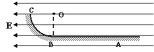 [例2]如图所示,BC是半径为R的1/4圆弧形的光滑且绝缘的轨道,位于竖直平面内,其下端与水平绝缘轨道平滑连接,整个轨道处在水平向左的匀强电场中,电场强度为E.今有一质量为m、带正电q的小滑块(体积很小可视为质点),从C点由静止释放,滑到水平轨道上的A点时速度减为零。若已知滑块与水平轨道间的动摩擦因数为μ,求: