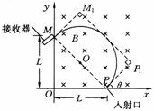 (09·福建·22) 分)图为可测定比荷的某装置的简化示意图,在第一象限区域内有垂直于纸面向里的匀强磁场,磁感应强度大小B=2.0×10-3T,在X轴上距坐标原点L=0.50m的P处为离子的入射口,在Y上安放接收器,现将一带正电荷的粒子以v=3.5×104m/s的速率从P处射入磁场,若粒子在y轴上距坐标原点L=0.50m的M处被观测到,且运动轨迹半径恰好最小,设带电粒子的质量为m,电量为q,不记其重力。