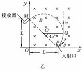 (1)设粒子在磁场中的运动半径为r。如图甲,依题意M、P连线即为该粒子在磁场中作匀速圆周运动的直径,由几何关系得