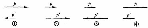 2.如图所示,p、p,分别表示物体受到冲量前、后的动量,短线表示的动量大小为15kg·m/s,长线表示的动量大小为30kg·m/s,箭头表示动量的方向.在下列所给的四种情况下,物体动量改变量相同的是 ( ).