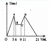 a mLC1mol·L-1 NaOH之后,改成滴加C2mol·L-1HCl,所得沉淀Y(mol)与试剂总体积V(mL)间的关系如右图所示。则所加入NaOH溶液的体积为