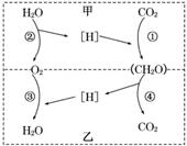D.甲过程全在叶绿体中进行,乙过程全在线粒体中进行