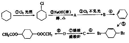 8.从环己烷可制备1,4-环己二醇的二醋酸酯,下列有关的8步反应(其中所有无机物都已