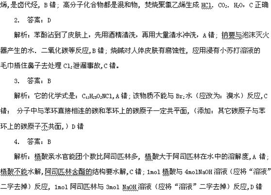 解析:聚丙烯.聚氯乙烯是线型高分子, 具有热塑性, A正确; 聚氯乙烯的单体是氯乙
