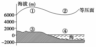 解析:图中①处等压面上凸,为高压,②为低压;近地面气压高低与高空相反,故气压大小为:④>③>①>②。近地面气压低,则气温高,故气温大小为:③>④>②>①。陆地气温高于海洋,为夏季,南方降水较多,滑坡、泥石流多发。