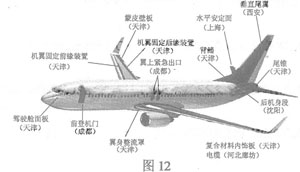 图12是美国新一代波音737飞机在中国的零部件生产地说明图。读图回答23-24题。