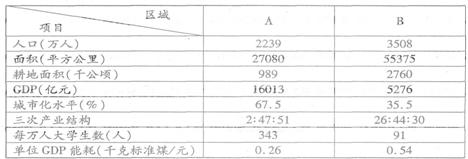 (1)两区域发展经济的相对优势是:A区域 ;B区域 。(6分)
