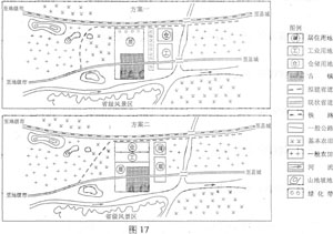 B.[城乡规划]图17是某古镇居住用地、工业用地、仓储用地和省道改线的两个规划方案图。 读图回答下列问题。(10分)