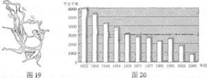D.[环境保护]图19是20世纪80年代洞庭湖示意图。图20是洞庭湖1825-2006年间同水位湖面面积变化柱状图。读图回答下列问题。(10分)