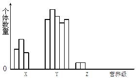 6.(09浙江卷)经调查,某生态系统中Y、X、Z分别为第一、第二和第三营养级,每个营养级不同物种的个体数量如图甲所示(图中每一柱条代表一个物种)。一段时间后个体数量发生变化,结果如图乙所示。