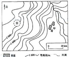 下图中H地恰与某高压天气系统中心吻合,该天气系统以每天约200千米的速度东移