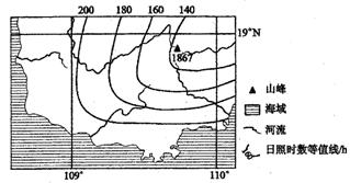 22.图7示意某地区1月份日照时数分布。日照时数等值线单位为小时,相邻等值线的差值为20小时。按图示方法在图中标注出另外三条日照时数等值线的数值,并说明理由。(10分)
