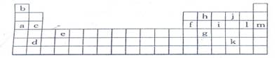 (2)①锂原子核外共有3个电子,其中两个在K层,1个在L层,当失去最外层的一个电子后,锂离子达到稳定结构,根据题给信息可知,锂离子再失去电子便会形成不稳定结构,因此锂原子失去第二个电子时所需能量远大于失去第一个电子所需的能量。②由表中数据可知:X失去第二个电子所需能量远大于失去第一个电子所需的能量(9倍多),而失去第三个、第四个电子所需能量皆不足前者的两倍,故第一个电子为最外层的1个电子,而其他几个电子应处于内层。结合所给的周期表知,X应为a,即钠元素,和j即氧元素所形成的化合物化学式分别为:Na2O和 Na2O2。③由表中所给Y的数据可知,Y失去第一、二、三个电子所需能量差别不大,而失去第四个电子所需能量远大于失去第三个电子所需的能量,因此,Y元素的最外层有3个电子,即为第ⅢA族的元素Al。④从题目所给信息知道,原子失电子所需能量不仅与原子核对核外电子的吸引力有关,还与形成稳定结构的倾向有关。结构越稳定失电子所需能量越高,在所给13种元素中,处于零族的m元素已达8e-稳定结构,因此失去核外第一个电子需要的能量最多。