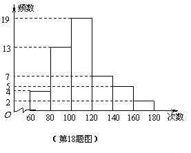 25. (2009德州)某中学对全校学生60秒跳绳的次数进行了统计,全校平均次数是100次.某班体育委员统计了全班50名学生60秒跳绳的成绩,列出的频数分布直方图如下(每个分组包括左端点,不包括右端点):