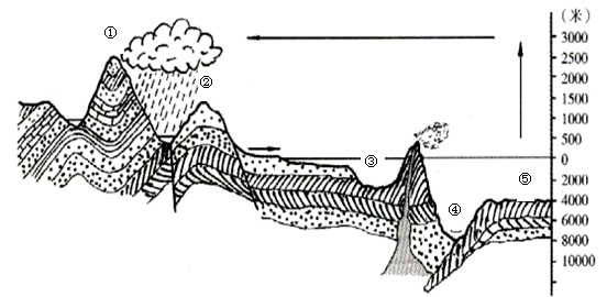 28.(共9分)下图为“亚洲东岸某地海陆分布剖面示意图”, 读图回答下列问题。