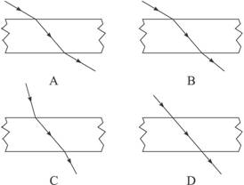 12.图4光线经过透明厚玻璃板的示意光路图,其中正确的是