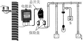 (2)安装完后,当开关S闭合时,通过保险丝的电流要比原来_________,原因是电源的电压_________ ,再接上一盏灯,电路的总电阻_________,根据欧姆定律公式_________可知,电路的总电流会_________。