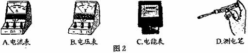 3.图2所示器材中用于辨别家庭电路中火线与零线的是