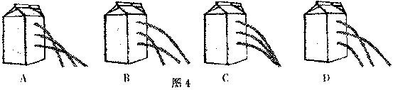 8.在空纸盒的侧面扎三个大小一样的孔。纸盘装满水后,水从小孔喷出,图4中最接近实际