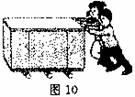 图10中,两位同学在水平路面上推动底部垫有圆术的术箱做匀速直线运动。以下分析正确的是