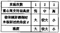 (1)物体刚好翻倒时木板转过的角度θ越小,间接反映了物体的稳度越