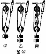 30.(5分)某实验小组在“测滑轮组机械效率”的实验中得到的数据如下表所示,第1、2、3次实验装置分别如图27中的甲、乙、丙所示。