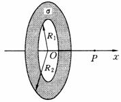 5.(09·北京·20)图示为一个内、外半径分别为R1和R2的圆环状均匀带电平面,其单位面积带电量为