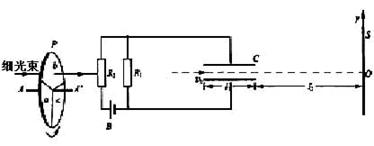 (1)设圆盘不转动,细光束通过b照射到R2上,求电子到达屏S上时,它离O点的距