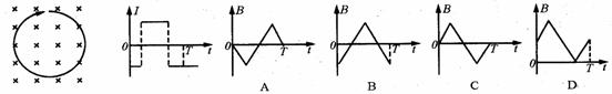 [例6]一个闭合线圈固定在垂直纸面的匀强磁场中,设磁场方向向里为磁感强度B的正方向,线圈中的箭头为电流I的正方向.线圈及线圈中感应电流I随时间变化的图线如图所示,则磁感强度B随时间变化的图线可能是图中的( )