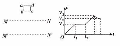 是匀强磁场区域的水平边界,并与线框的bc边平行,磁场方向与线框平面垂直,现金属线框由距MN的某一高度从静止开始下落,下图2是金属线框由开始下落到完全穿过匀强磁场区域瞬间的速度一时间图象,图象中坐标轴上所标出的字母均为已知量,求: