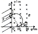 ,由x轴上的A点(10cm,0)沿与x轴正方向成30°斜向上射入磁场,在磁场中运动一段时间后射入电场,后又回到磁场,经磁场作用后又射入电场。已知质子质量近似为