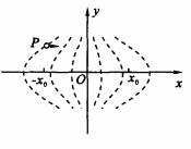 例3. 静电透镜是利用静电场使电子束会聚或发散的一种装置,其中某部分静电场的分布如图2所示。虚线表示这个静电场在xOy平面内的一簇等势线,等势线形状相对于Ox轴、Oy轴对称,等势线的电势沿x轴正向增加,且相邻两等势线的电势差相等。一个电子经过P点(其横坐标为
