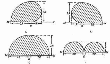②当粒子沿水平向右的方向进入磁场时,其应该在MN的上方作圆周运动,且另外的半圆将会出现在点O的左边。直径也是2R。