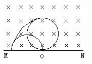 ①当粒子沿垂直MN的方向进入磁场时,由其所受到的“洛伦兹力”的方向可以知道,其作圆周运动的位置在左侧。由“洛伦兹力”公式和圆周运动“向心力”公式可以得到: