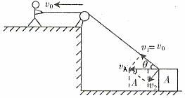 拉水平面上的物体A,当绳与水平方向成θ角时,求物体A的速度。