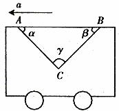 向左作匀加速运动时,由于AC、BC之间的类似于“滑轮”,故受到的拉力相等,设为FT,圆柱体所受到的合力为ma,在向左作匀加速,运动中AC长为