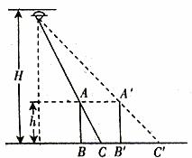 例1. (04年广东高考)一路灯距地面的高度为h,身高为